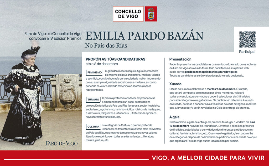 Poderán ser candidatas/os aos premios Emilia Pardo Bazán calquera persoa ou entidade nacida ou residente en Vigo, ou que leve a cabo a súa actividade na cidade, e que reúna os requisitos necesarios en calquera das categorías establecidas: